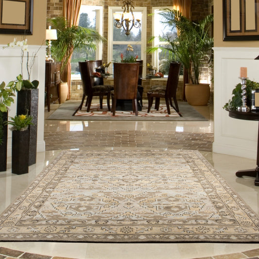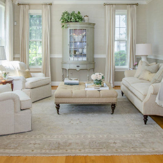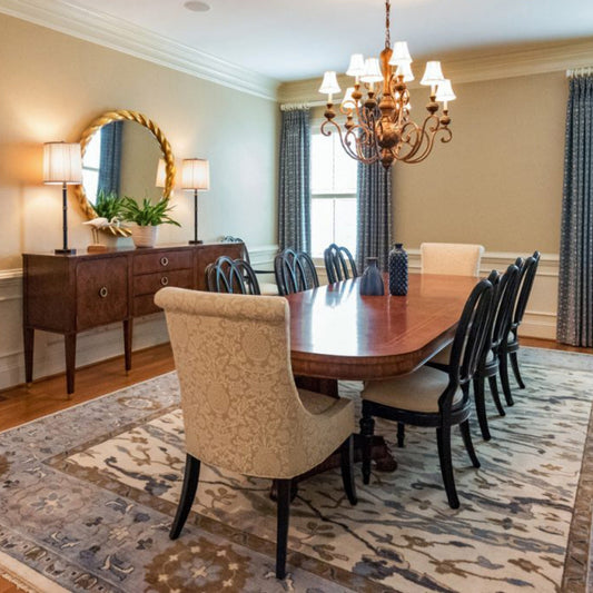 Our Provence Collection features traditional hand knotted wool rugs in contemporary colors. Made in India. Available in up to seven standard sizes with custom options: 12'0" x 15,0," 10'0" x 14'0," 11'0" x 11'0," 9'0" x 12'0," 8'0" x 10'0," 5'0" x 8'0, 2'10" x 12'0."