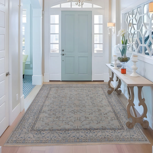 Our Noblesse Collection features hand-knotted wool fine rugs with a vintage texture in soft weathered colors. Made in India. Available in up to seven standard sizes with custom options: 12'0" x 15,0," 10'0" x 14'0," 11'0" x 11'0," 9'0" x 12'0," 8'0" x 10'0," 5'0" x 8'0, 2'10" x 12'0."