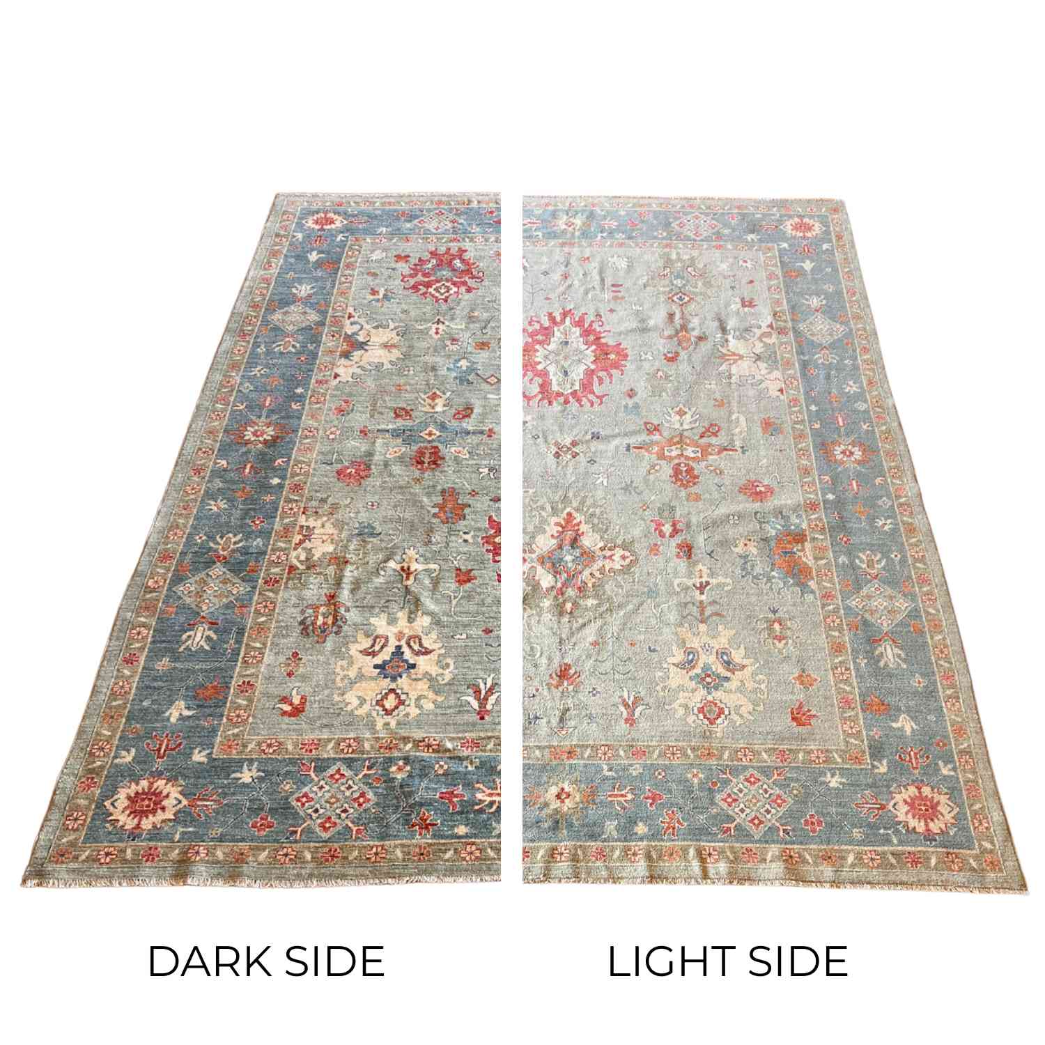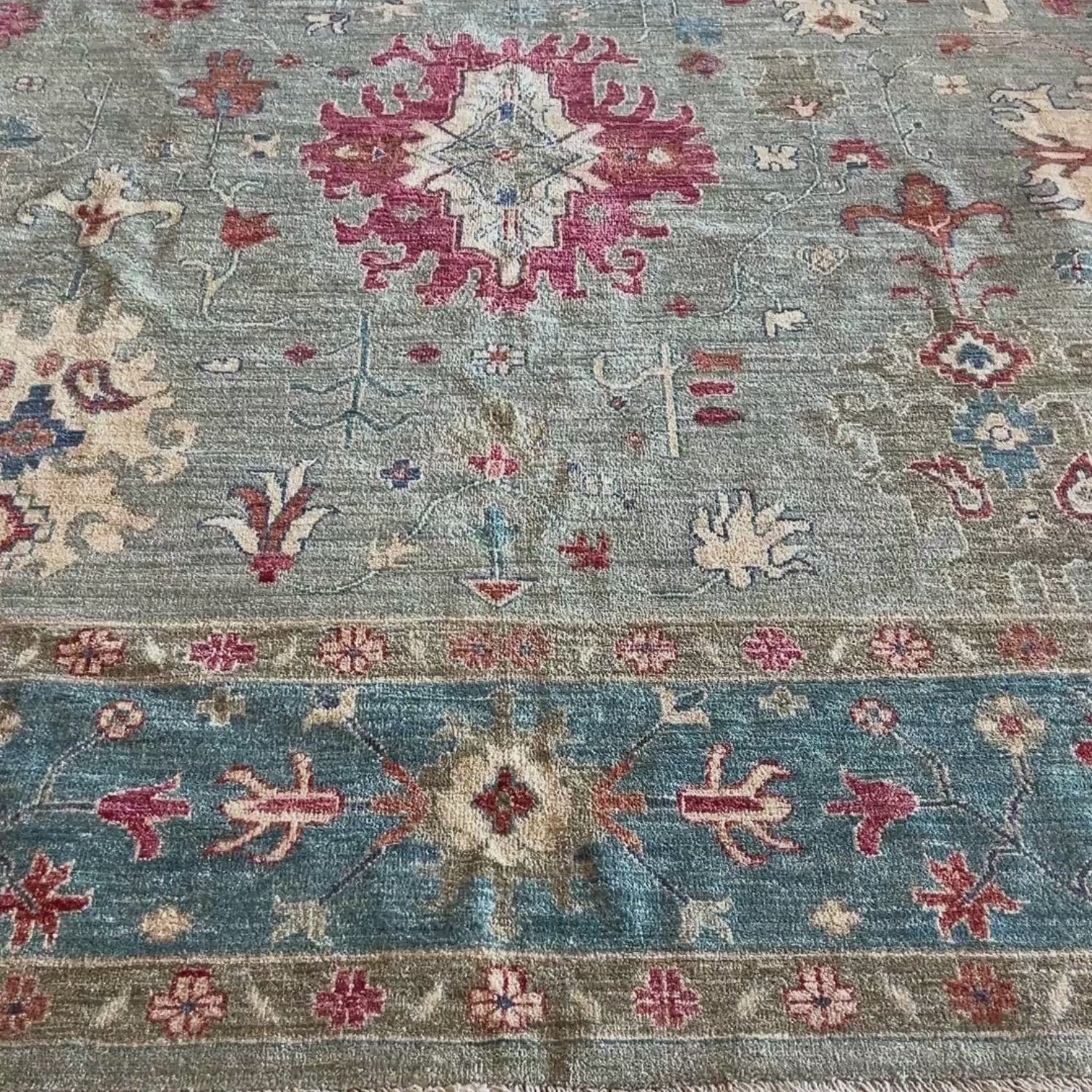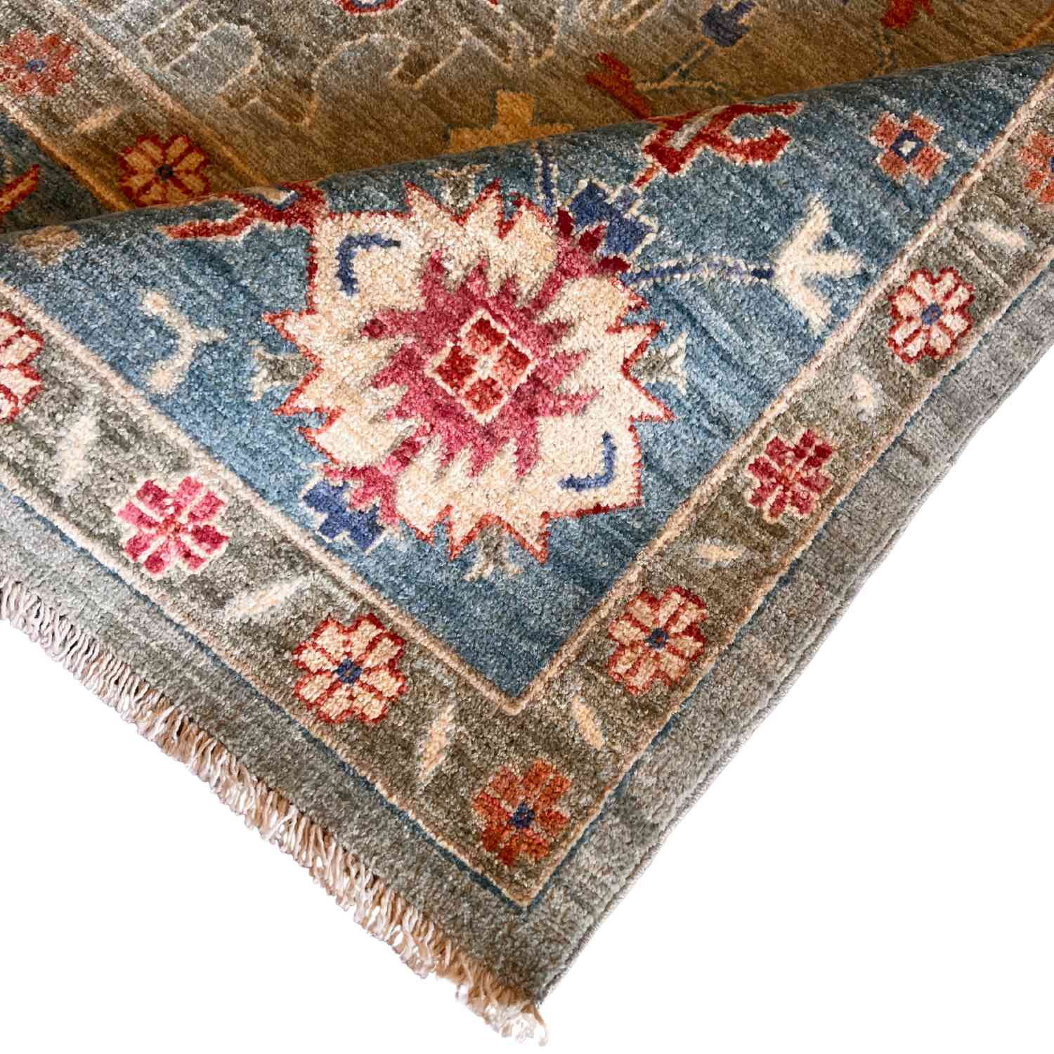 Bandamir is a beautiful wool rug in soft tones of light green and blue. Hand-knotted in Afghanistan.