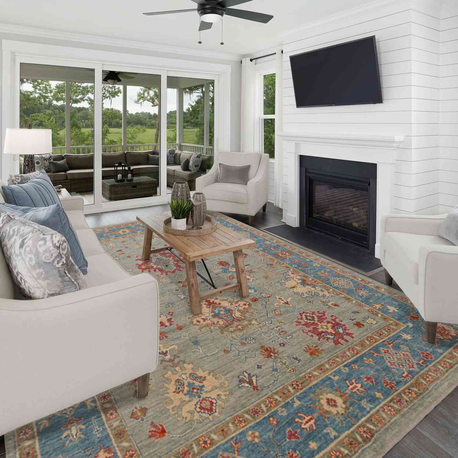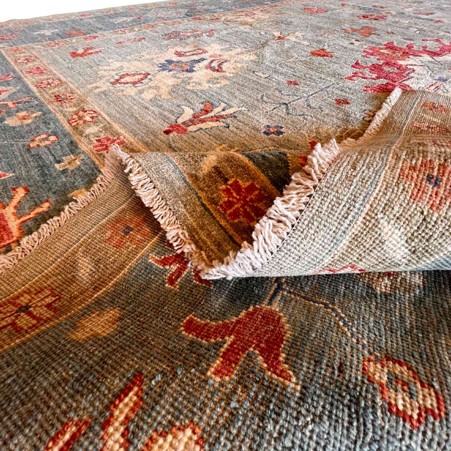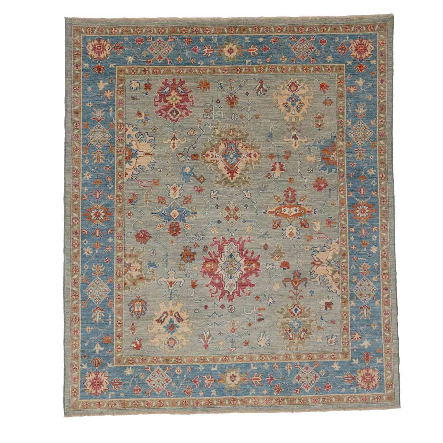 Bandamir is a beautiful wool rug in soft tones of light green and blue. Hand-knotted in Afghanistan.