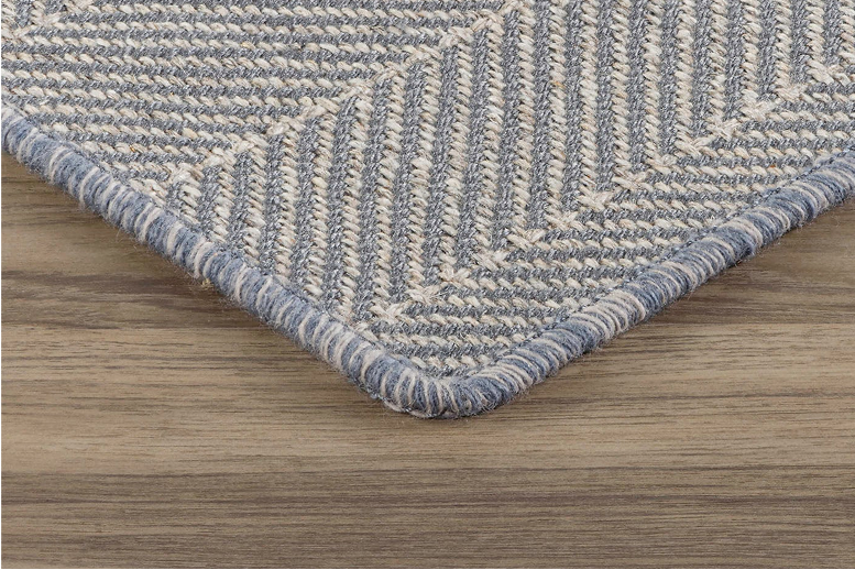 While some of our product photos show a binded finish, this rug will come with a machine serged finish.