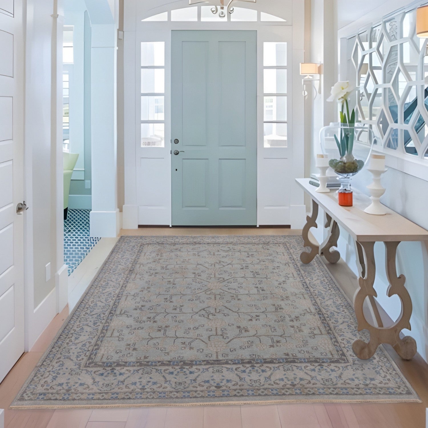 The Karuli brings a refreshing palette of seafoam, grays, and greens to a timeless design. Hand-knotted in India from durable wool, this traditional rug is part of our Provence Collection and features fringe on its short sides. Its contemporary coloring feels both calm and uplifting, adding a breath of fresh air.