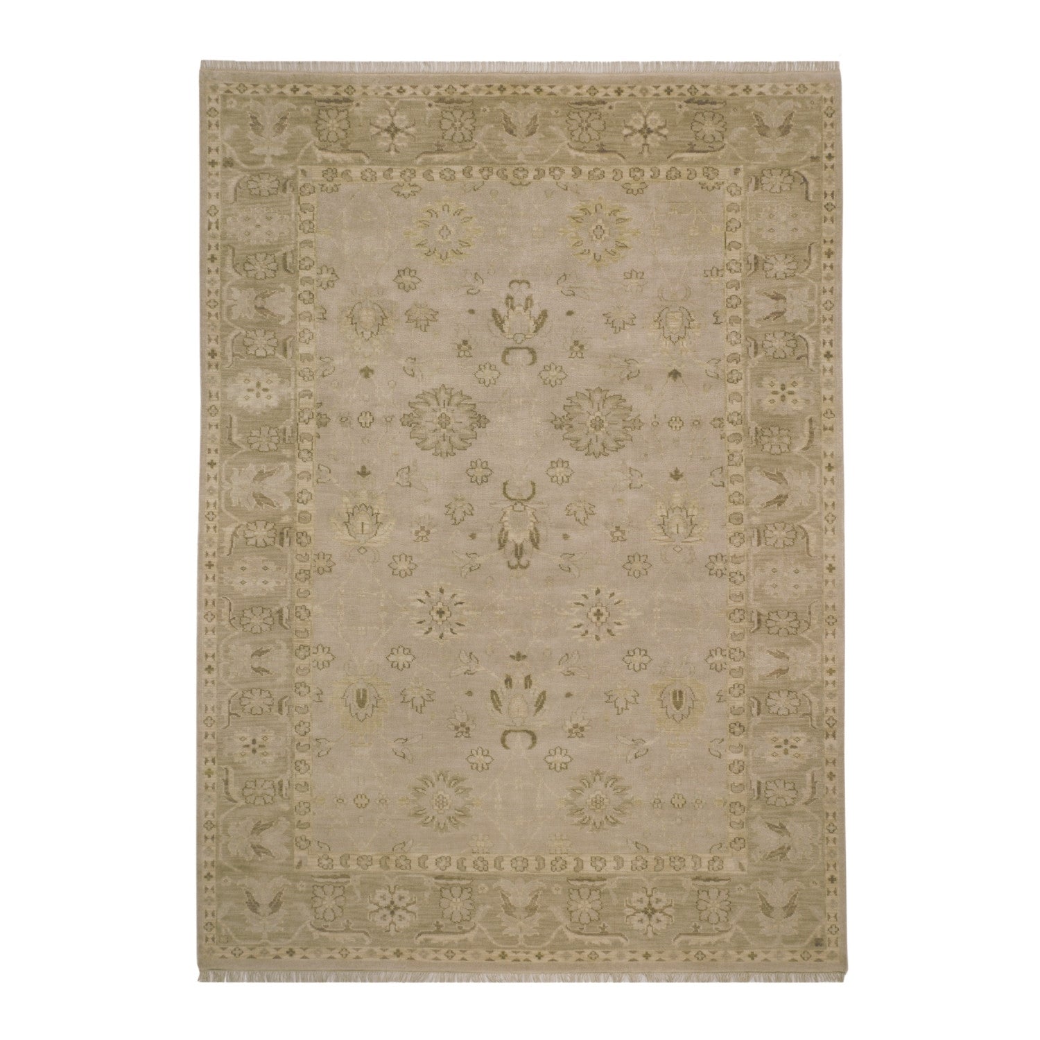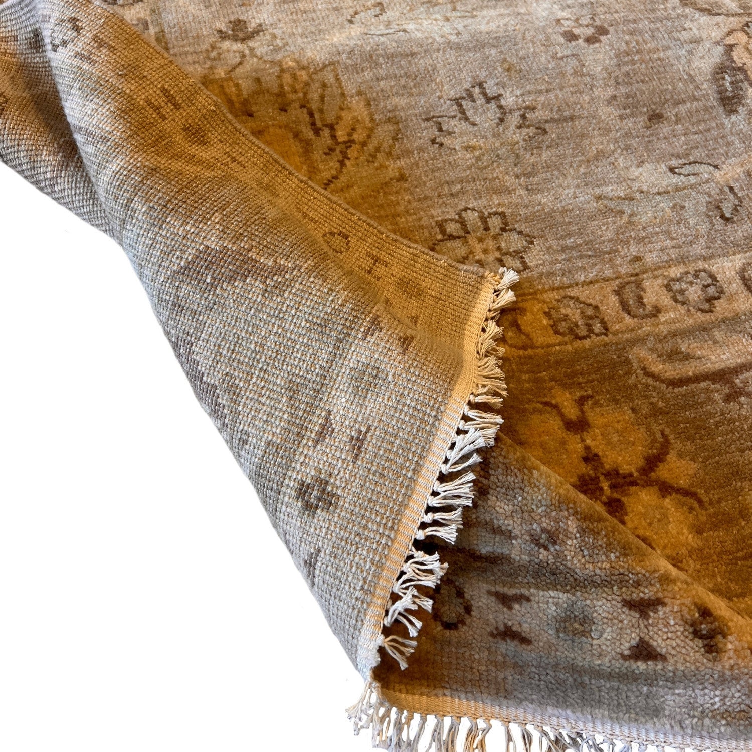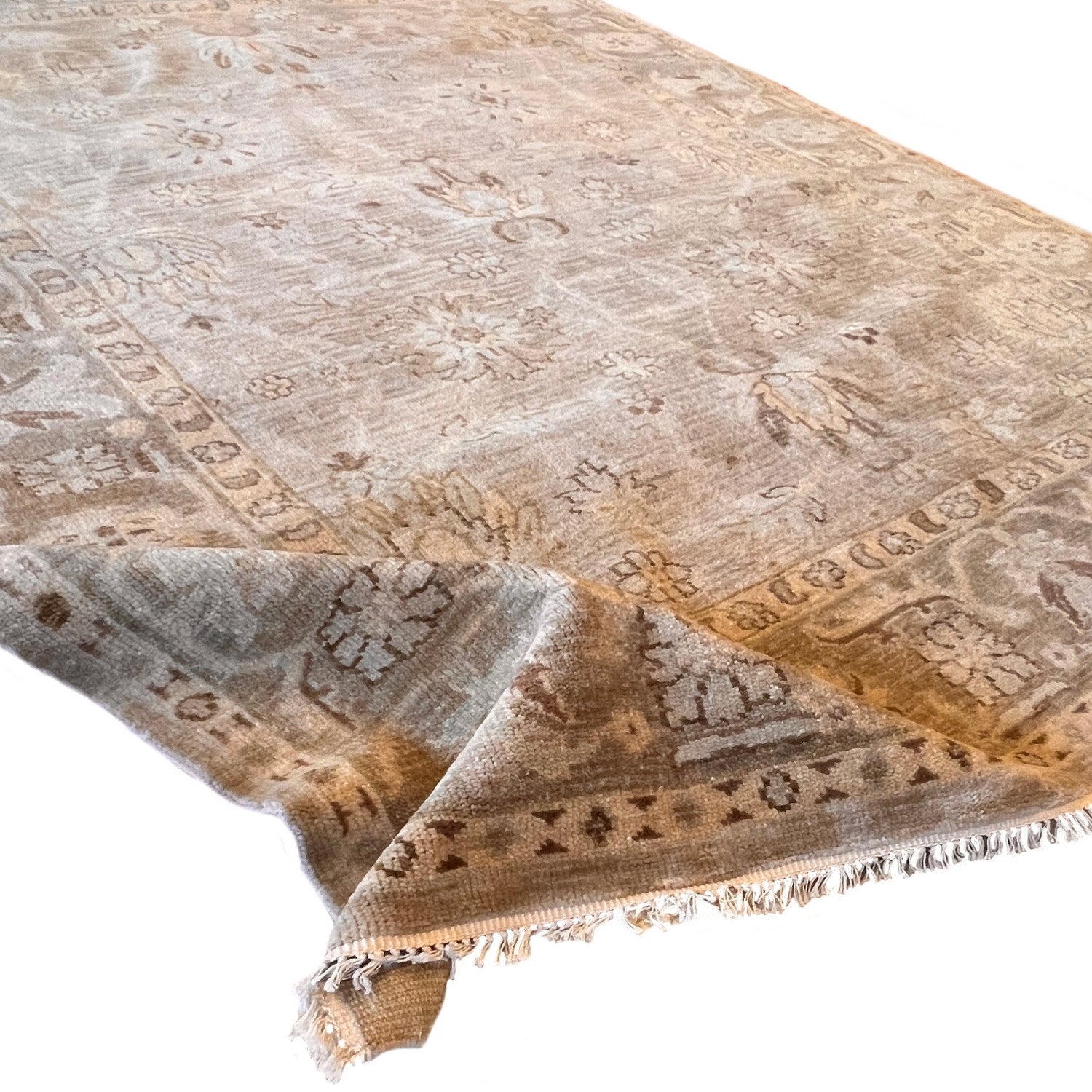 The Mahal captures a classic Persian rug design, rendered in an exquisite finish of brown shades with subtle touches of sage green. As part of our Provence Collection, this wool rug is hand-knotted in India and finished with fringe. It’s a sophisticated, earthy take on a beloved traditional pattern.