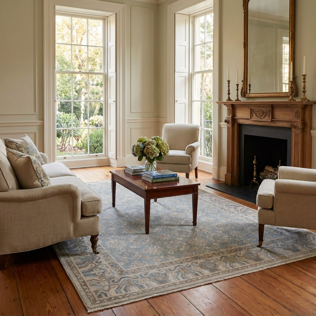 Crafted from fine wool and luster-washed for a vintage patina, every Riverie rug features exquisite borders and authentic fringed ends. This value priced collection is hand-loomed, capturing the timeless look and feel of a hand-crafted heirloom.Available in four sizes: 5' x 8', 8' x 10', 9' x 12', and 9’10" x 13'.